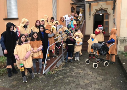 Am Fastnachtsdienstag machten sich 25 Jungmusiker und Erwachsene aus dem Hauptorchester als Schafherde verkleidet auf,