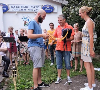 Im Namen der Musiker überreichte Thorsten Rings dem jungen Paar, verbunden mit den herzlichsten Glückwünschen, ein kleines Präsent.