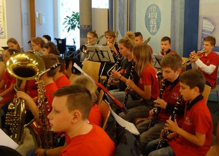 Nach der musikalischen Eröffnung durch die Querflötistinnen aus dem Schülerorchester gaben zunächst die jungen Musiker der Bläser-