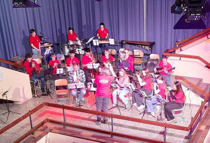 Das bunt gemischte junge Orchester aus allen umliegenden Vereinen passte gerade so auf die Bühne und begeisterte das Publikum,