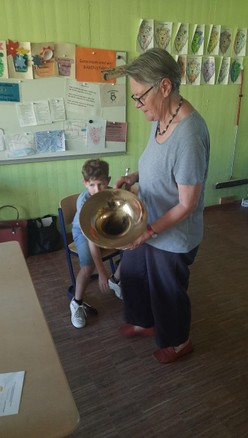 Bei der Expedition auf dem Planeten durften die Besucher dann noch näher ran: Unter Anleitung der Nachwuchsmusiker und Mitgliedern von Jugend – und Hauptorchester begann in den Klassenzimmern ein munteres Ausprobieren und bald füllte sich das Schulhaus mit unterschiedlichsten Klängen.