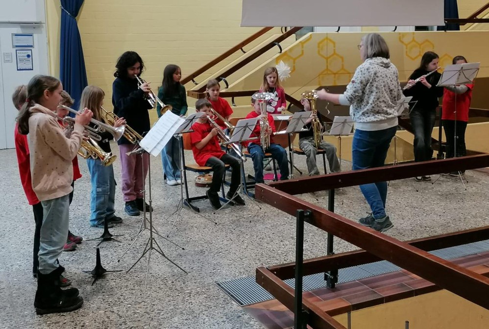 Die Kinder der Bläser AG, aus der Kooperation mit der Schwarzwaldschule, spielen nun seit 14 Monaten und ließen wieder einmal tolle Fortschritte hören.